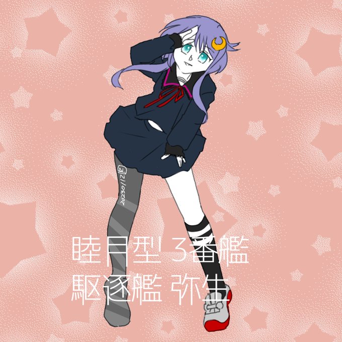 弥生です♪ 弥生(三月の意)だけど、進水は7/11(おめでとう!)起工は1/11。竣工は8/28。 #艦これ版深夜の真剣お絵描き60分一本勝負 #艦これ版真剣お絵描き60分一本勝負_20230711 #弥生 #艦これ