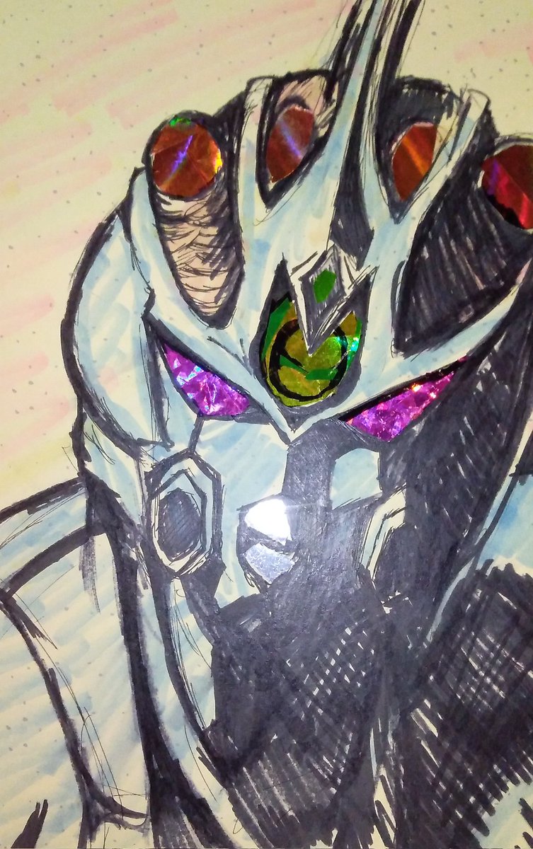 『強殖装甲チャイカー』メイキング?w こんな感じで、ラフとって模写りながら アレンジしつつ描いているので 普通に大変だし、それなりに時間かかるし すごく楽しいw #お花畑青空大写生大会 #しら画 #でびるさまにささげるえ #にじさんじ #強殖装甲ガイバー