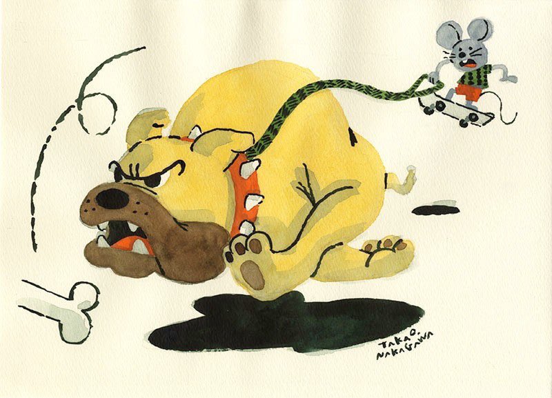 5月13日は「愛犬の日」ということで 愛犬を散歩するネズミを描きました。 犬のイメージは、トムとジェリーに出てくるブルドックのスパイクです◎ #愛犬の日 note.com/ekakinonakagaw…