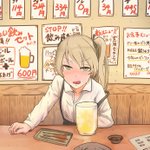 「いぶきはこんな〝飲んべえ〟になっちゃいかんぞ」「うるせえ、早く焼き鳥焼け!」 #みんなで楽しむTwitter展覧会 #落書き #落書き向上委員会 #イラスト好きな人と繋がりたい #絵描きさんと繋がりたい #愛酒の日