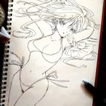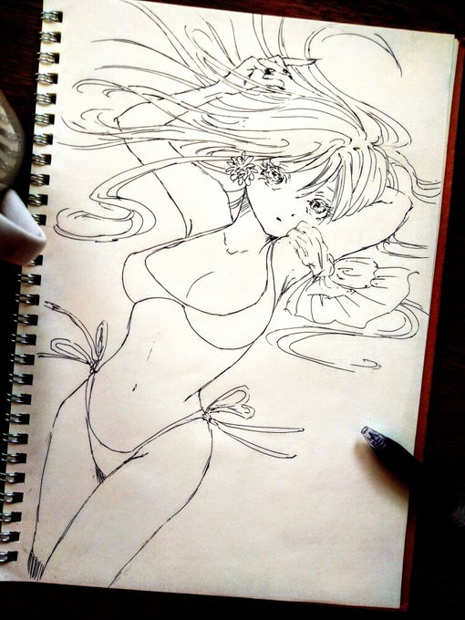 君の姿に僕の心は まるで夏の Spicy Chicken. 画材はSARASA&マッキー、大創産業色鉛筆。 昔イキがってワンショルダーの水着で海にいきました。あれ、おむねにヴォリューム無いと肩紐無い方から海中で脱げるんですよね…ふ。 おやすみなさい皆様。また明日ね♡ #イラスト #手描き #illustration