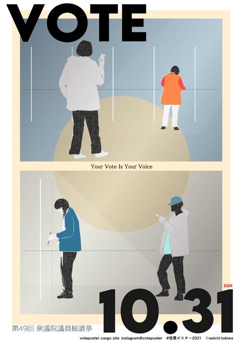 10月31日は衆院選。企画・運営している #投票ポスター2021 作りました!自分が思う「こうなってほしい」がすぐに変わらなくても、自分の選挙区にそれに直結する候補者がいなくても、未来のために投票します。変えたい。ウェブサイトでPDFダウンロードできます。 #衆院選2021 voteposter.cargo.site
