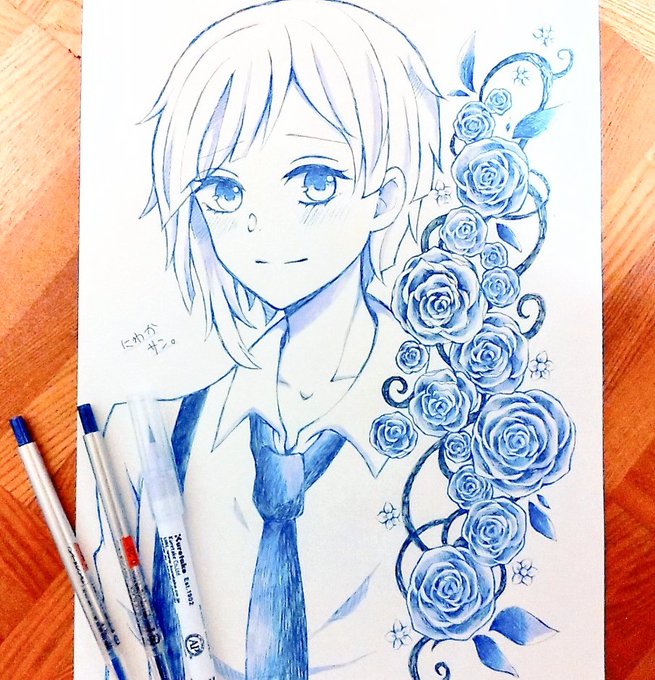 昨日のあつしくんアナログ塗り_φ(・_・ 誕生花のオジギソウが謎の草になってしもた😂 #探偵社の可愛い虎君の生誕祭2023 #探偵社の新入りタイガーボーイ生誕祭 #5月5日は人虎の誕生日2023 #アナログ #イラスト