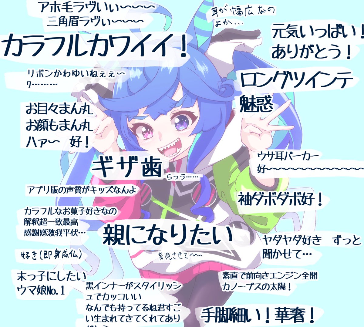 ほとんど外見のことしか書けませんでした!!!! トップウマドルの魅力が色紙一枚に収まるわけがなかった…!!!! 2枚目はツッコミという形で言語化したファル子への愛です。 #ウマ娘 #推しウマ娘のかわいさを言語化
