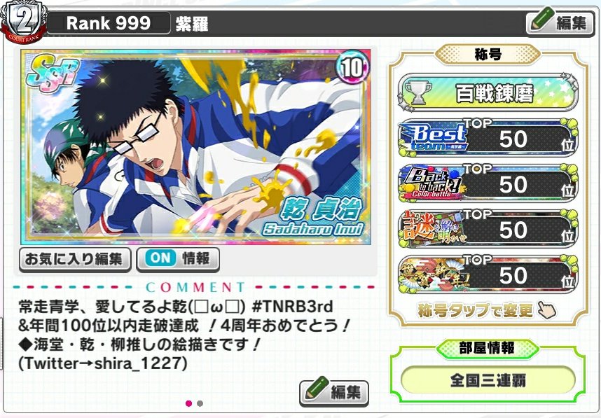 #日曜日突然のテニプリテニミュフォロー祭 【近況】アニメの感想描きしながらテニラビ走ってます🏃🎨 審判推しと見せかけて乾推し🤗👓 アクティブ且つマニアックにコツコツ活動中なので一緒に楽しんで頂ける方よろしければ🙌💕 いいねRT無言フォローで巡回します!
