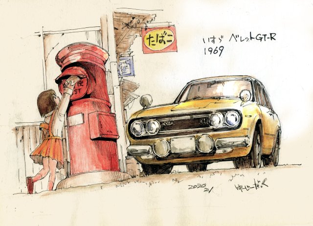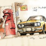 旧車とレトロな町並みのある昭和の風景。過去絵。 (アナログ水彩画をデジタル調整して再投稿。) 旧車とレトロな風景が好き。こういう絵も描きます😊 #イラスト #落書き #レトロ #旧車 #イラスト好きな人と繋がりたい #イラスト好きさんと繋がりたい #絵描きさんと繋がりたい