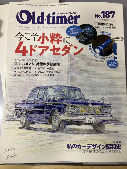 オールドタイマーNo.187発売されました! LEDトーチ&ライトが付録してます。 私はシトロエンAmi8を描きました、妄想ラリーバージョンです。 よかったらお手に取ってご覧いただけたら幸いです。 #イラスト #アナログ #色鉛筆 #illustration #drawing #colordpencil #シトロエン #旧車