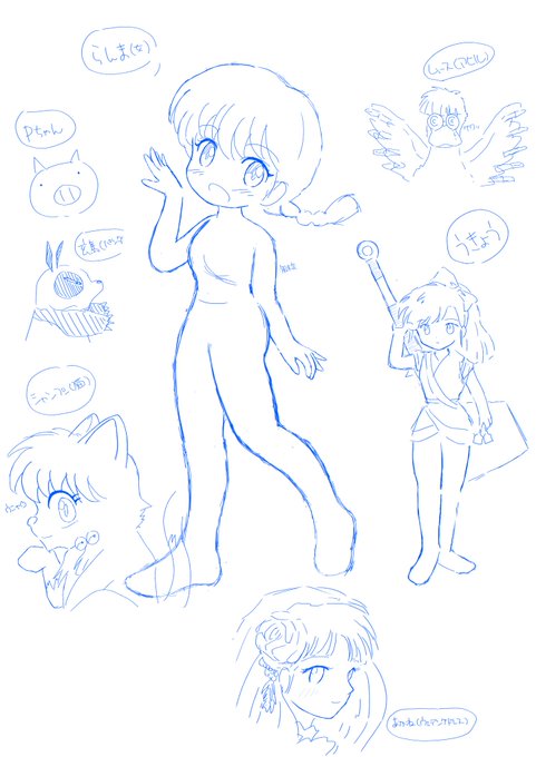 #高橋留美子 先生生誕祭2022② 「#らんま 1/2」より #早乙女乱馬 きゅん #天道あかね たそ #早乙女らんま たそ #シャンプー たそ 3つとも過去絵です。 #高橋留美子生誕祭2022 #高橋留美子誕生祭2022