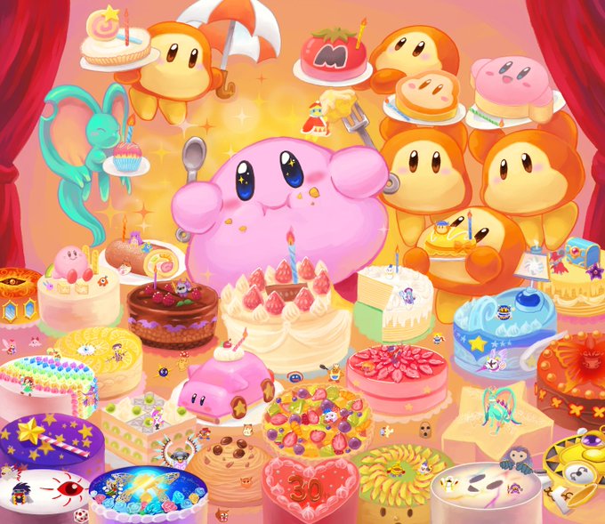 大遅刻しましたがカービィ30周年おめでとう!! ディスカバリーも1ヶ月たったのでそのお祝いも兼ねて ケーキ30個カービィならあっという間に無くなるはず #星のカービィ30周年 #カービィのハッピーバースデー