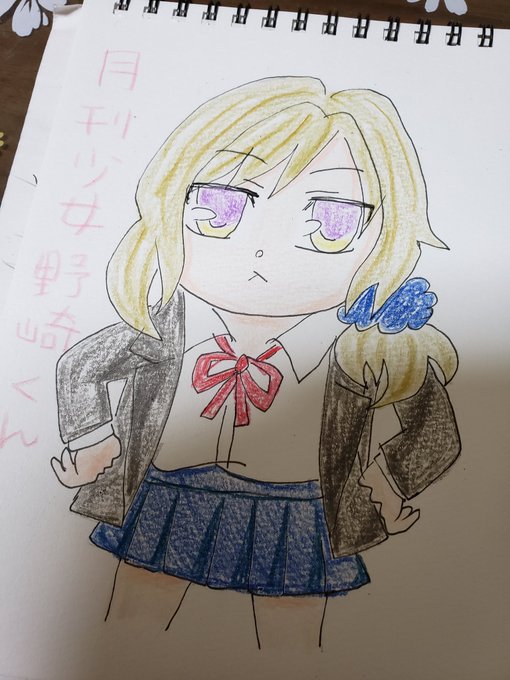 #絵描きさんと繋がりたい #イラスト #デフォルメ #絵柄が好みって人がいたらいいなぁ #月刊少女野崎くん #色鉛筆 今日も暑いですねぇ(´;ω;`) 窓開けて除湿がちょうどいいです゚+.゚(*´∀`)b゚+.゚