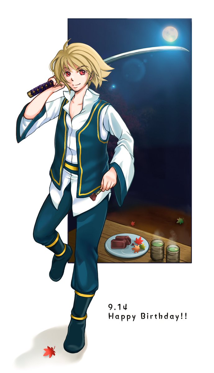 今日は「月華の剣士」の楓の誕生日。 という訳で、お祝いイラスト描きました。好物の水羊羹を添えて。 Happy Birthday‼︎🎉🎂🥳 #月華の剣士 #9月SNKキャラ誕生祭 #格ゲーキャラ描こうぜ