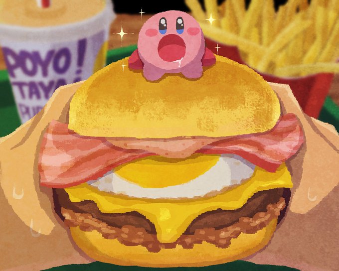 昨日すき焼き月見やっと食べれた〜🎑 具が全て濃厚なもんで、すき焼き!というよりもジャンク好きが好みそうな濃い味でポテトとよく合った🍟 バンズが他の月見と違ってたのも良かったな〜 #イラスト好きさんと繋がりたい #イラスト #月見バーガー