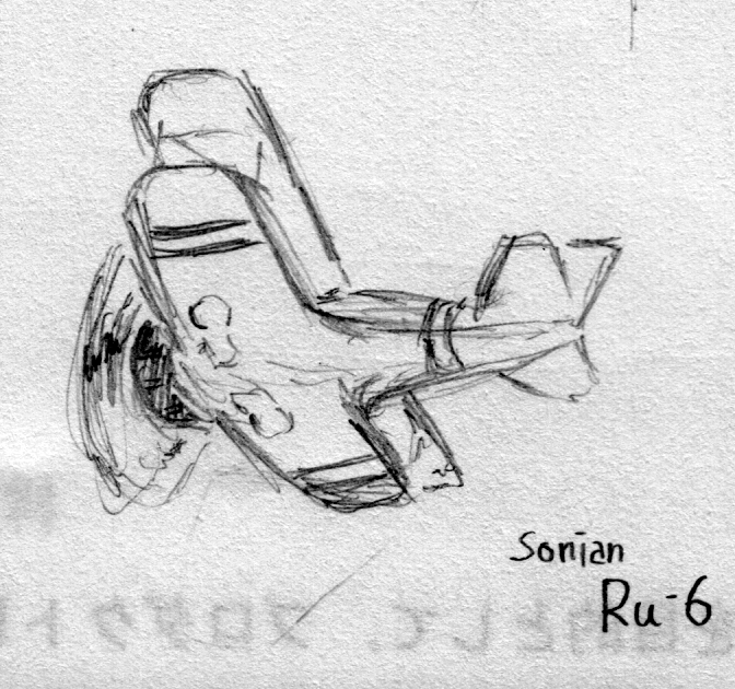#架空機 #イラスト #Sonian_SR 名称 Ru-6 種別 戦闘機 設計 ルフェールポフ設計局[Ru](Руфеарпов) 旋回時間 12秒 上昇速度 12.7m/s 離陸距離 130m 最高高度 8700m 最高速度 380km/h (高度 2900m) 航続距離 ? 乗員 1名 →