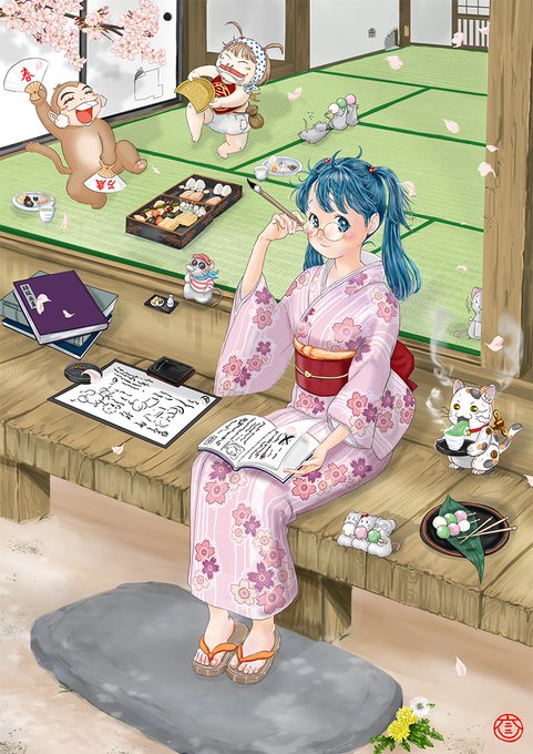 #桜の作品でTLにも桜を咲かせましょう いいねの巡回完了🫡✨✨ 桜の作品といえば、ずっと昔に描いた『ポンコツ漫画』のお花見を楽しむねづみ達のイラスト🐹🍡🌸 チビではないねづみを描いたのもこれが最後でした😂❣️