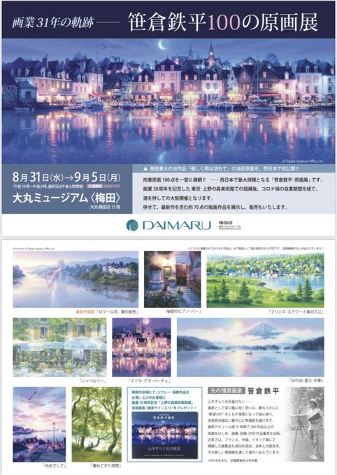 笹倉鉄平ちいさな絵画館で開催中の「色々な国の家や建物を描いて」展へのご感想② 「大丸ミュージアム梅田の『100の原画展』も楽しみです。温かくて優しい作品をたくさんの方々にも味わっていただきたいです。」 dmdepart.jp/museum/umeda/s… kaigakan-teppei.net #笹倉鉄平 #画家 #アート #梅田