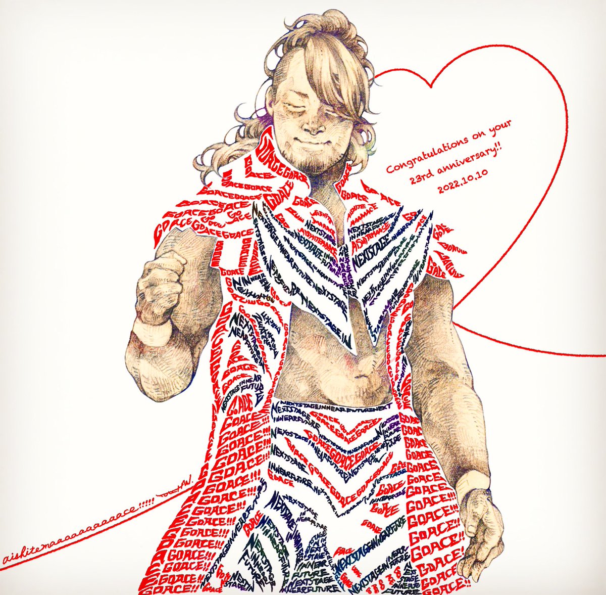 当日から少し飛び出てしまいましたが…😭💦 棚橋選手、デビュー23周年おめでとうございます!真摯な愛を、次の一歩を歩みつづける力を、本当に有難うございます。逸材に眩しい思いを一杯いただきながら紡ぐ毎日が楽しくて幸せだ!これからも全力のその姿を応援しています! #棚橋弘至 #njpwfanart