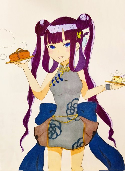 約3年ほど前からやっているゲームアプリ『Fate/Grand Order』の最近の推しキャラの楊貴妃ちゃんを描いてみました😊✨テーマは『楊貴妃が中華料理屋のウェイトレスだったら』です🌟 #FGO好きさんと繋がりたい #FGO #イラスト #楊貴妃 #イラスト好きな人とつながりたい #アナログイラスト