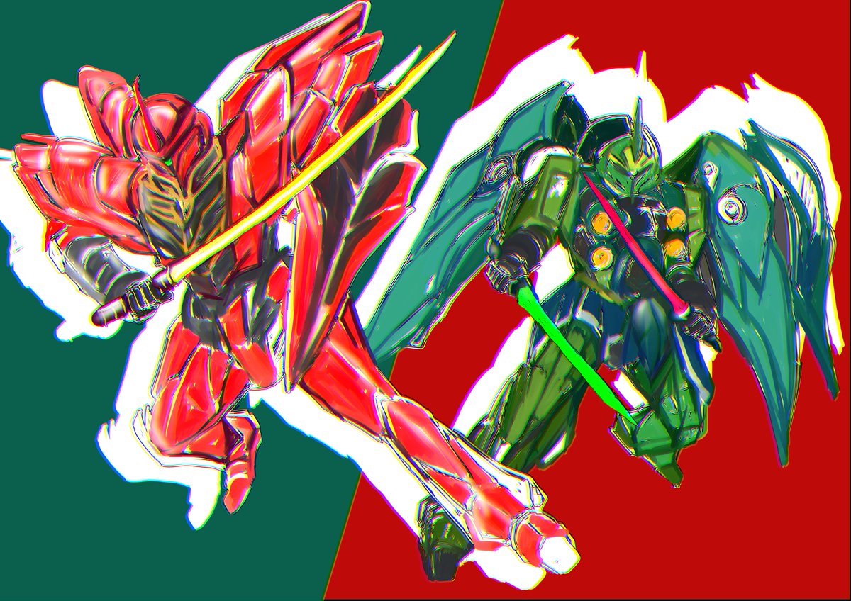 一日遅れですが新規にクリスマス用イラストを描いている時間が無かったので、紅白お絵描き合戦用に描いていたロボット絵をクリスマス仕様に改造てみました🎅 #機動戦士ガンダムUC #革命機ヴァルヴレイヴ #新世紀エヴァンゲリオン #魔法騎士レイアース #クリスマス