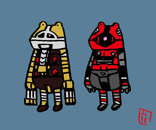 #エルピー・プル生誕祭2023②(3/8) 「#機動戦士ガンダムUC 」より、#プルトゥエルブ こと #マリーダ・クルス 中尉。 #ユニコーンガンダム2号機 以外は過去絵です。 元々形が複雑な上に色が黒っぽくて形が分かりにくい😇 なので細かい部分の形はかなり適当😇 #バンシィ・ノルン #クシャトリヤ