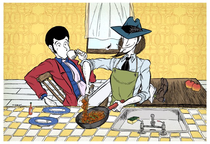 祝!フォロワー様1200人❗️ 記念絵は次元大介。 好きなキャラ。 そろそろコナンとのコラボやらないかな。 コナン「わー、今日もカッコイイ!パパ」😀 次元「パパって呼ぶんじゃねぇ!」 #ルパン三世 #次元大介 #絵描きさんと繋がりたい