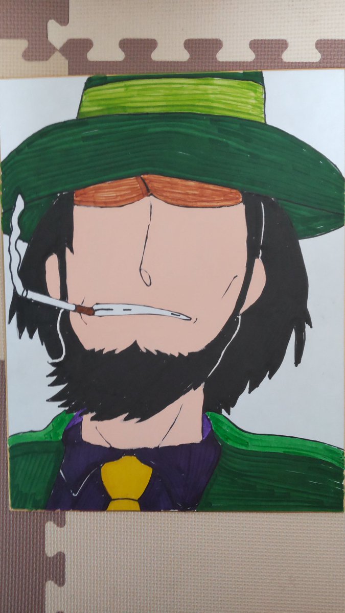 おはようございます✨✨ ルパンゼロの若い頃の次元を描いてみました。 アレルギーや寒暖差であまり元気でませんが、ぼちぼちで頑張ります*\(^o^)/* #絵描きさんと繋がりたい #次元大介