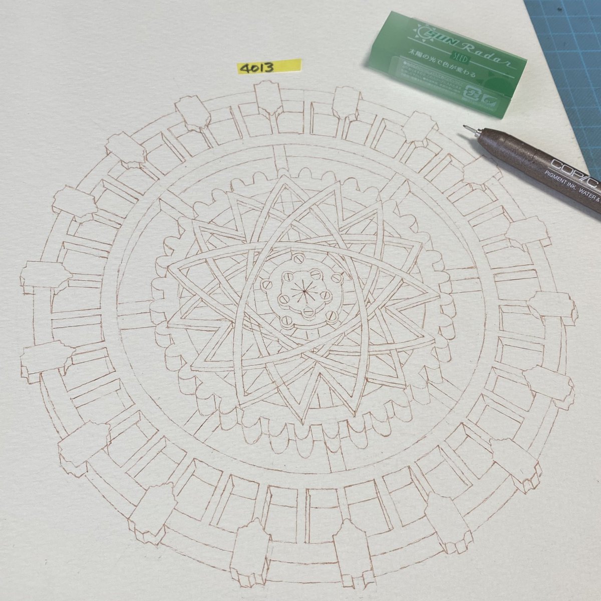 単独の歯車を描き描き。 線が震えてるぅ😭 #gear #歯車 #歯車沼 #drawing #ドローイング #pendrawing #ペンドローイング #steampunk #スチームパンク #steam #steampunkart
