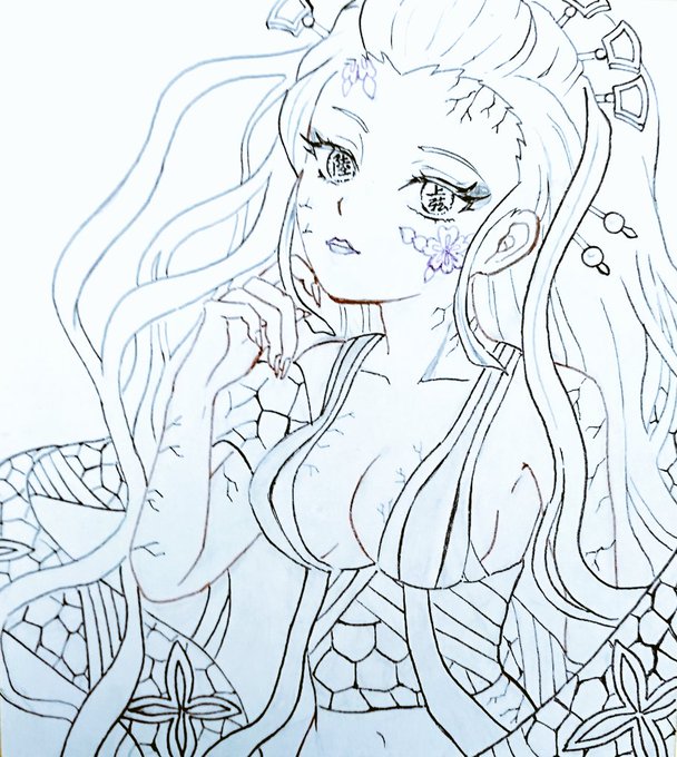 童磨が宮野さんだったみたいなので、過去の模写絵を( ๑´•ω•)੭_□ ソッ 1年前くらい(もっとかな?)に描いたやつ。画像小さいの引き伸ばしてるから、薄目で見てくださいw #気滅の刃 #童磨 #絵描きさんと繋がりたい #イラスト好きさんと繋がりたい