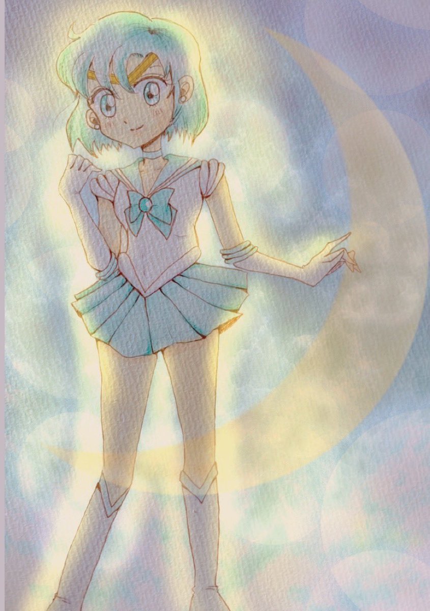 おはようございます☀️ もう5月も終わりですね…😱 今日の過去絵です🤗 #手描きイラスト #アナログイラスト #美少女戦士セーラームーン #セーラーマーキュリー #水野亜美 #コピック #色鉛筆 #過去絵