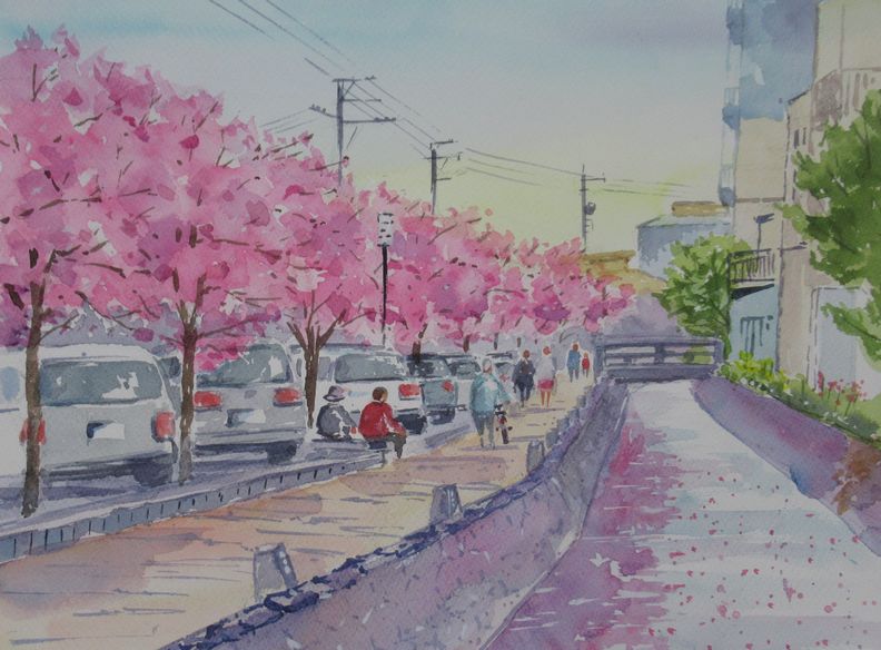 色々な思いを込めて。「春よ、来い」 #色鉛筆画 今年お初です。 開花には間に合いました。 背景を、これ以上は無理と言うくらい混色し、複雑な色を目指しました。 #ライトファスト #ホルベインアーチスト #色辞典 #アラベール #河津桜 #みんなで色鉛筆イラスト見せ合おうよ #絵描きさんと繋がりたい