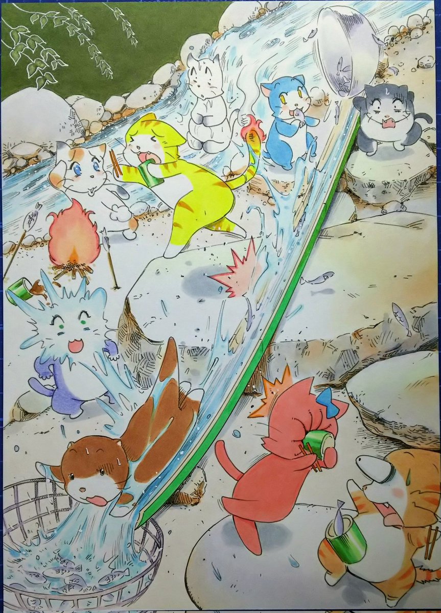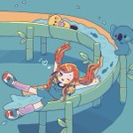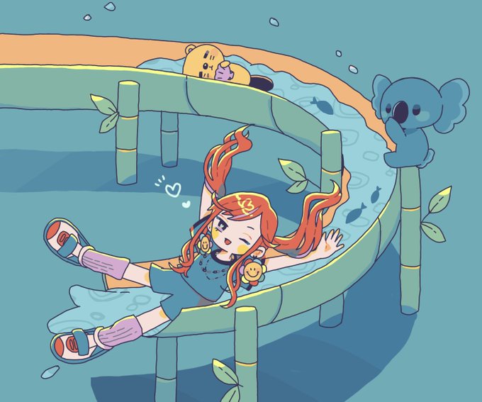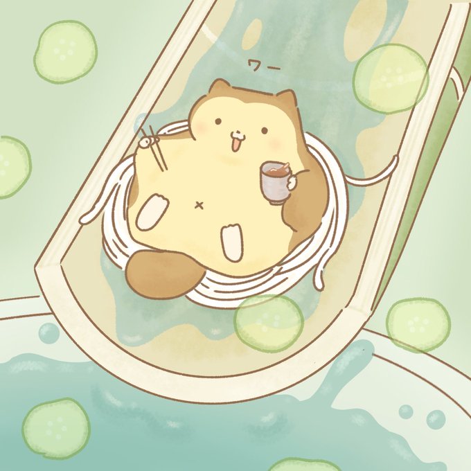 22/9/7 人間の世界に こんなに楽しい滑り台があったの!💨 これ、お餅の国のテーマパークに欲しいのっ💕 それぇ〜っ♬♬ #おもちの日々 #ウォータースライダー #じゃなくて #流しそうめん #お餅 #ゆるいイラスト #ゆるキャラ #癒し #イラスト #みんなで楽しむTwitter展覧会 #絵本作家 #NFTartist