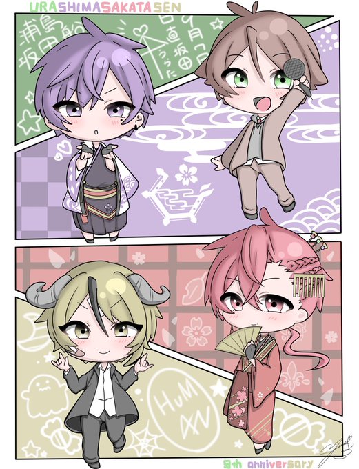 ❥❥❥❥ʜᴀᴘᴘʏ 9ᴛʜ ᴀɴɴɪᴠᴇʀsᴀʀʏ𓊝𓄹𓄺 浦島坂田船結成9周年おめでとうございます🎉 これからも"4人で"後悔のない航海を……!! #浦島坂田船結成9周年 #浦島坂田船9周年 #うらたぬ王国の美術館 #しまーと #坂田です #センラの絵ぇやん