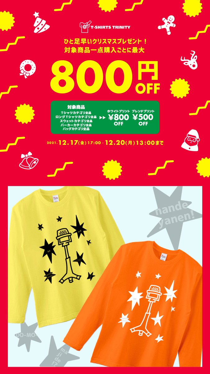 TシャツトリニティからロングTシャツの紹介です! 漫才マイク 黒 ttrinity.jp/product/656150… 漫才マイク 白 ttrinity.jp/product/656132… 12/20 13:00まで最大800円引きのセール開催中です🎤 #Tシャツトリニティ #セール #漫才 #マイク #サンパチマイク twitter.com/tshirtstrinity…