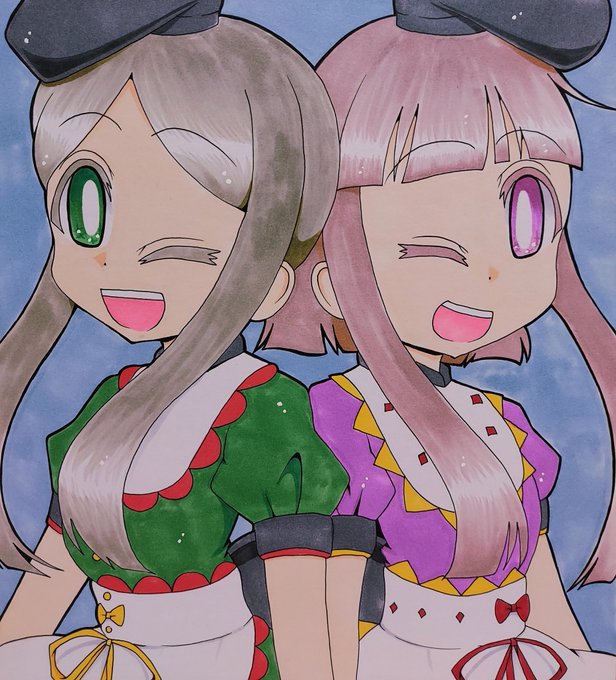 何やっても息ピッタリな里乃ちゃん&舞ちゃん✨ #東方Project #touhou #爾子田里乃 #丁礼田舞 #イラスト #東方イラスト #芸術同盟 #イラスト好きさんと繋がりたい #絵師さんと繋がりたい #東方絵描きさんと繋がりたい