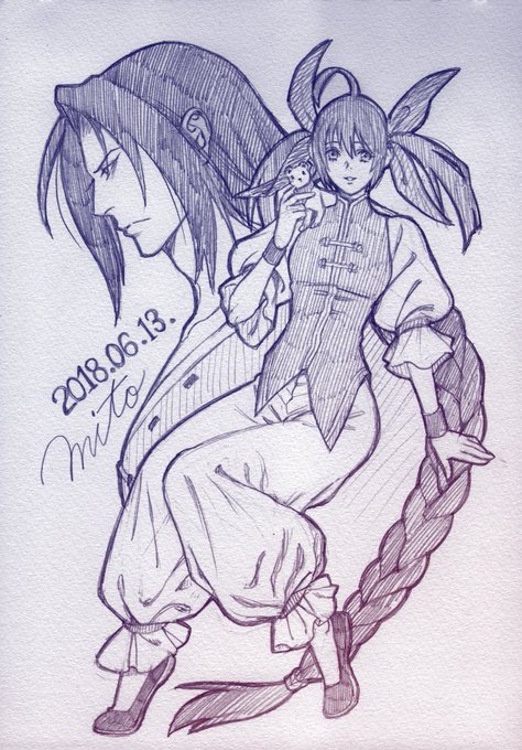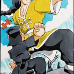 #格ゲーキャラ描こうぜ 5月27日が誕生日のかた おめでとう。 #牙刀 #黒子 は家庭用で使用可能に。 黒子「あ、これいい技ですね。ボクも実戦で使ってみようかな!」 牙刀「(そんなあっさり体得されたら、長年苦労した俺の立つ瀬が…)」 黒子「え? 何か言いました?」 牙刀「い・いや別に…」