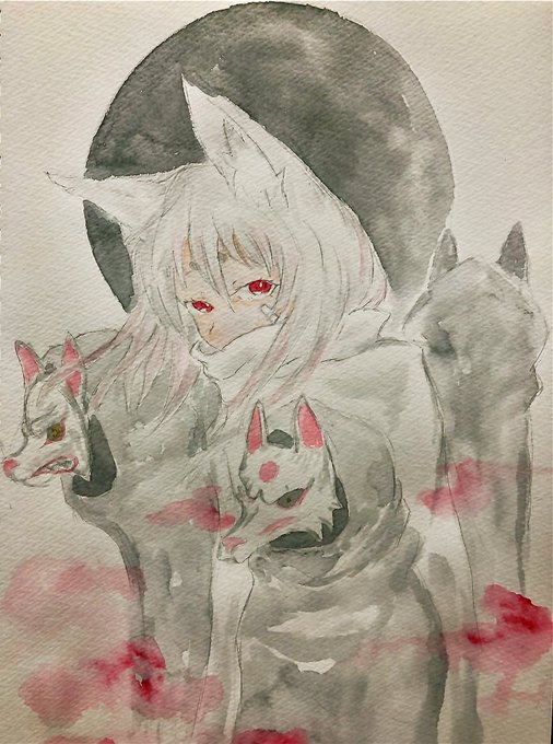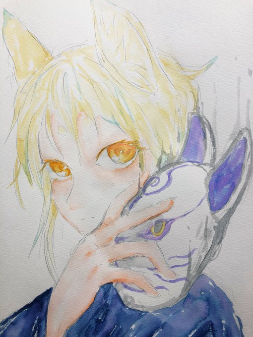 おはよーございます!今日の1枚です٩( 'ω' )و #狐娘 #狐耳 #1日1絵 #水彩 #狐面 #イラスト #イラスト好きな人と繋がりたい #イラスト好きさんと繋がりたい #絵描きさんと繋がりたい