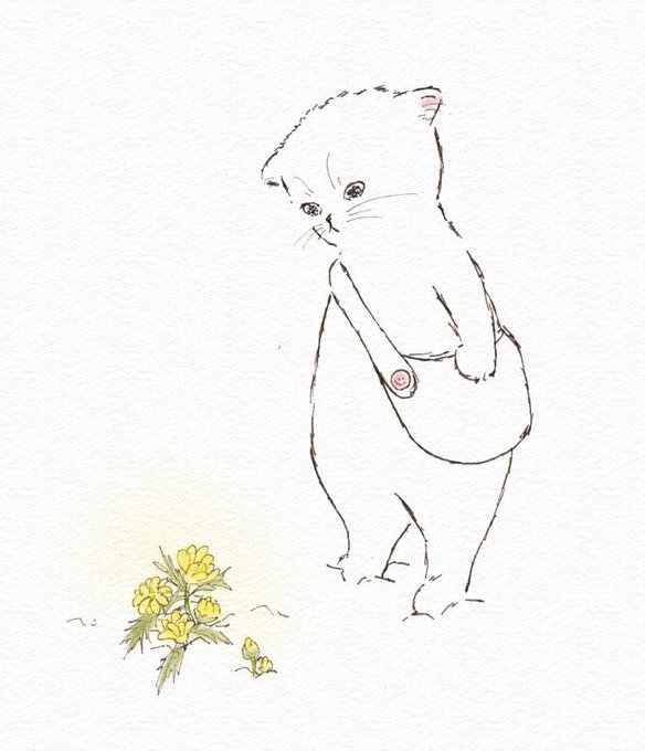 猫と小さな花。「春が来たかにゃ🐱」 #猫イラスト #ねこ #猫のいる暮らし #イラスト #みんなで楽しむTwitter展覧会 #猫好きさんと繫がりたい #cats #illustration