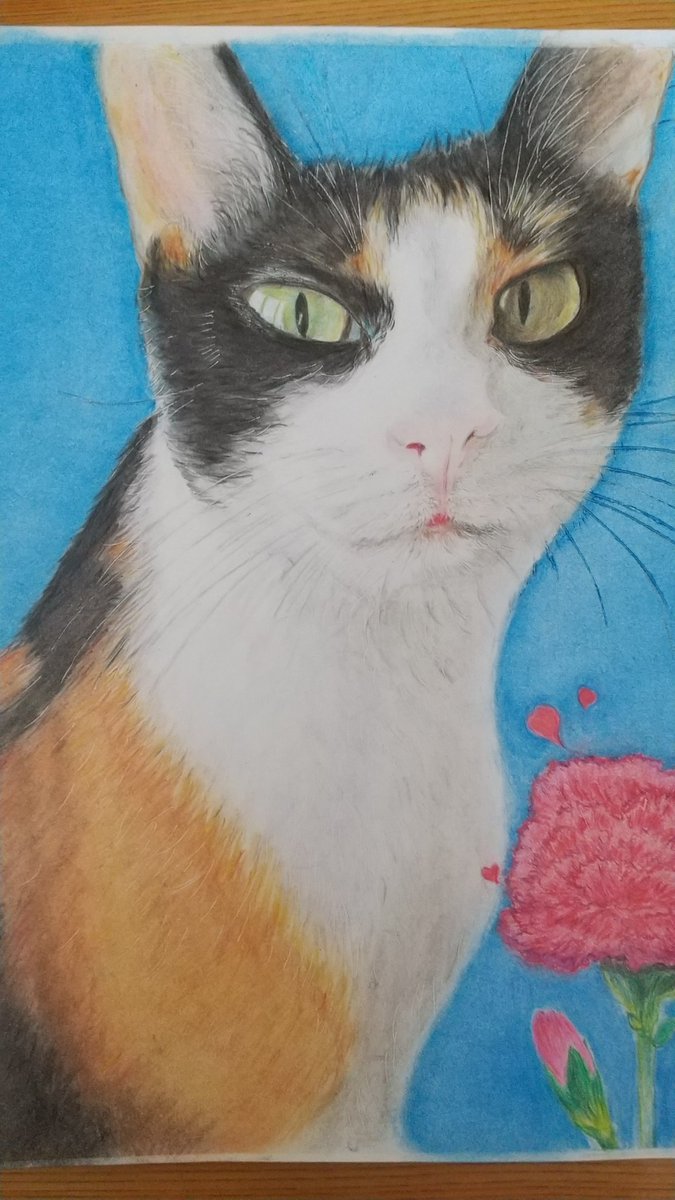 花よりちゅーるな娘🐱多忙につき去年の母の日時期に載せた絵を再掲💦おやつがちゅーるだとわかった時の娘の表情が好きです🤗#色鉛筆画 #絵描きさんと繋がりたい #イラスト好きな人と繋がりたい #猫好きさんと繫がりたい #猫の居る暮らし #猫のいる幸せ #みんなで楽しむTwitter展覧会 #母の日