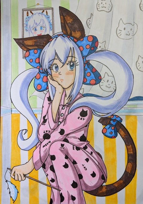 星髪の猫娘 Star Hair Cat girl #drawing #ilustration #originalcharacter #catgirl #nekomimi #copic #art #ArtistOnTwitter #イラスト #オリキャラ #けものみみ #ねこみみ #猫娘 #イラスト好きな人と繋がりたい #絵描きさんと繫がりたい #ケモミミ #アナログイラスト