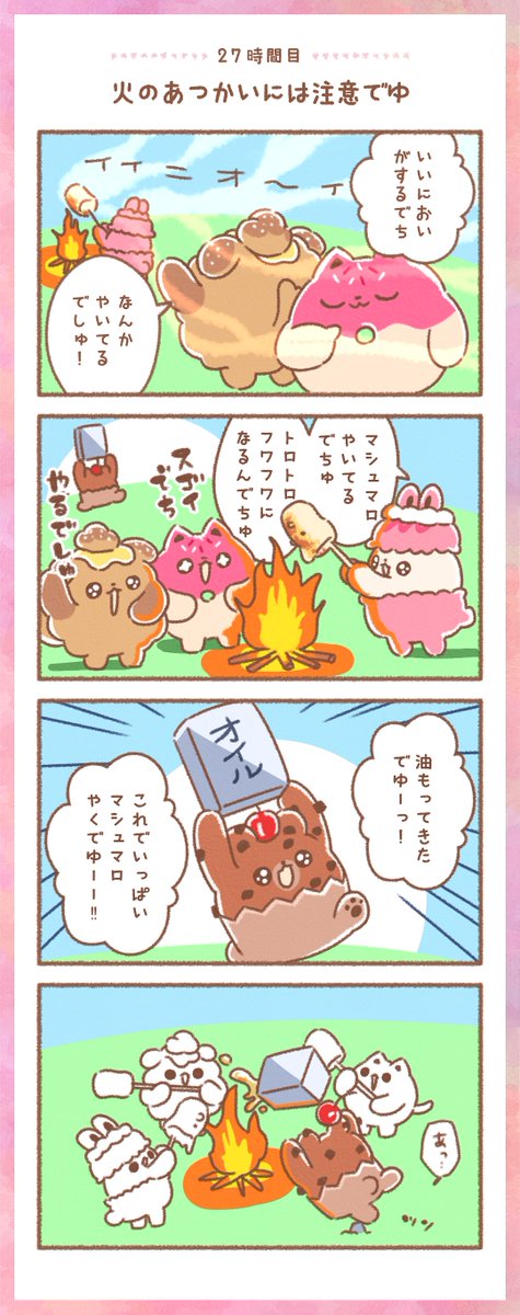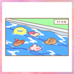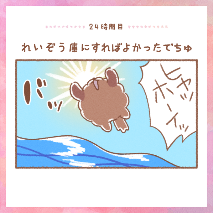 24時間目「れいぞう庫にすればよかったでちゅ」 夏といえばプールに決まってるよね!!そうだよね!! #甘ったれあにまるず🍩 #4コマ漫画 #漫画が読めるハッシュタグ #イラスト好きな人と繋がりたい