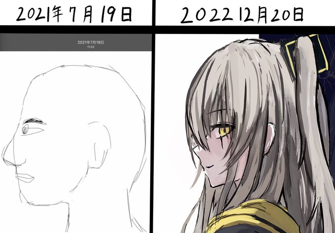 #過去絵と現在絵を比較してみようキャンペーン #画力ビフォーアフター 左 2023年 7月 右 2021年 4月 右見るの自分でも恥ずかし😂😂😂😂 ワンドロで初めてメロディ描いてそれ以来2023年の7月まで描いてなかった😂