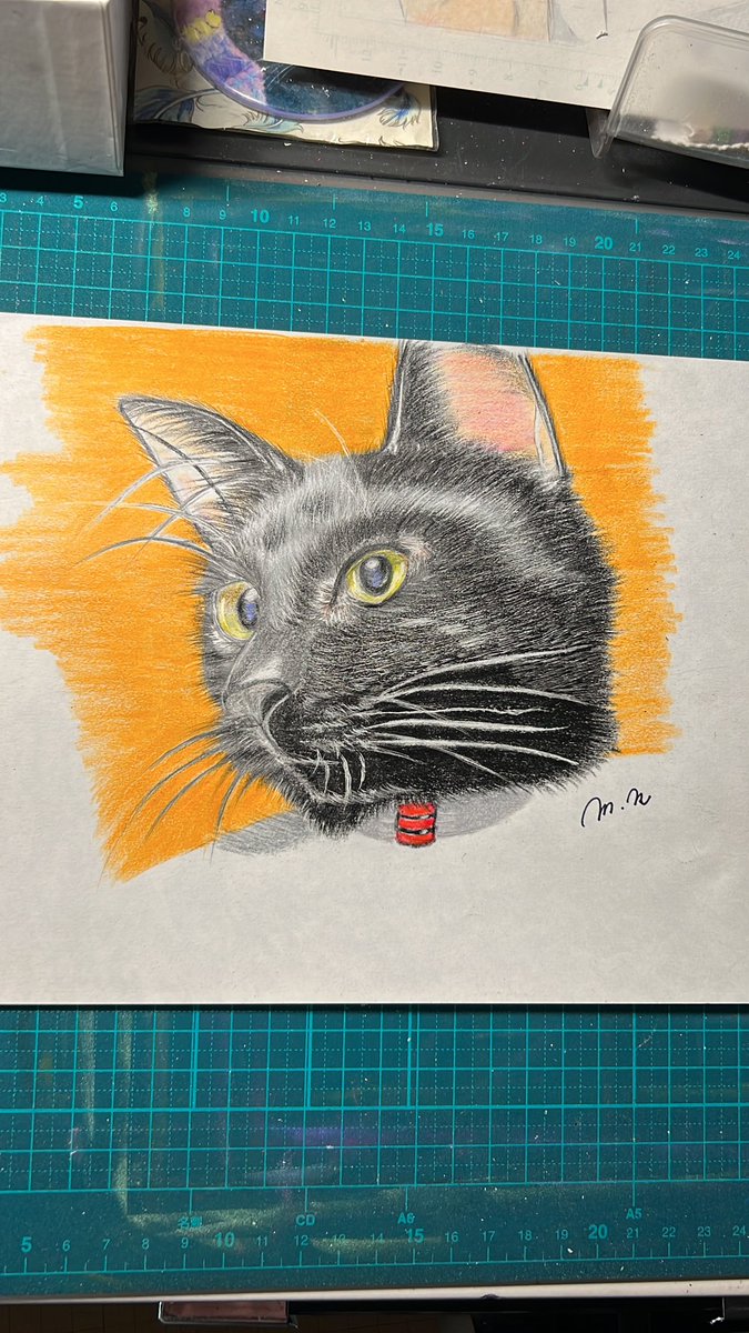 #色鉛筆画上達ドリル #画力ビフォーアフター コピー用紙に描いた黒猫(2021)と最新のドリルです💦めっちゃ恥ずかしい(//ฅωฅ//)でもはる先生を見つけて自分もこんな絵を描きたいと思って描き始めた1枚目😊沢山の先生をフォローし足りなかった部分をドリルと配信と作品で勉強しています✍🏻#イロドリアル