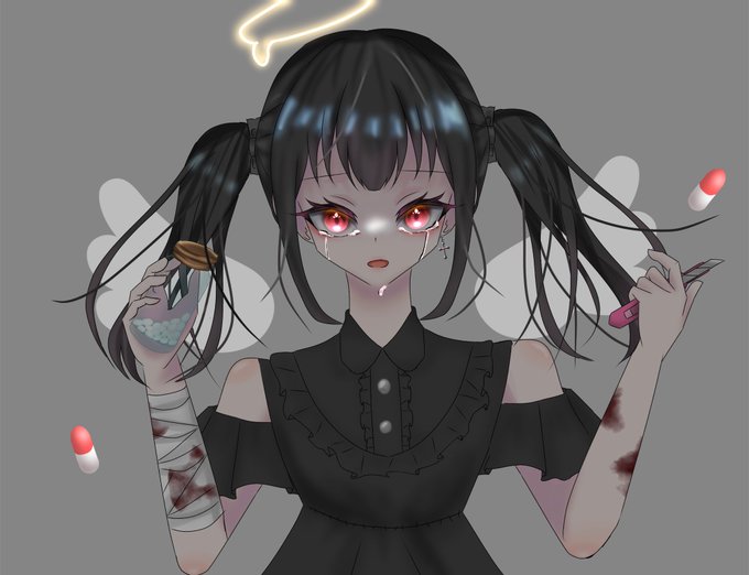 1枚目中2の頃 2枚目リメイク版(血あり) 3枚目リメイク版(血なし) です!!病み系かなw #イラスト #ibisPaint #病み系 #夏の創作クラスタフォロー祭り #夏休みはフォロワーさんが増える