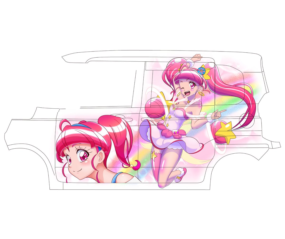 #プリキュア #precure #イラスト好きさんと繋がりたい #お絵描きさんと繋がりたい #プリキュア好きさんと繋がりたい #痛車 左側の痛車フィルムイラストがやっと完成しました(*´Д`) 左側はキュアスターやひかるにします^^ 右側はお楽しみに♪