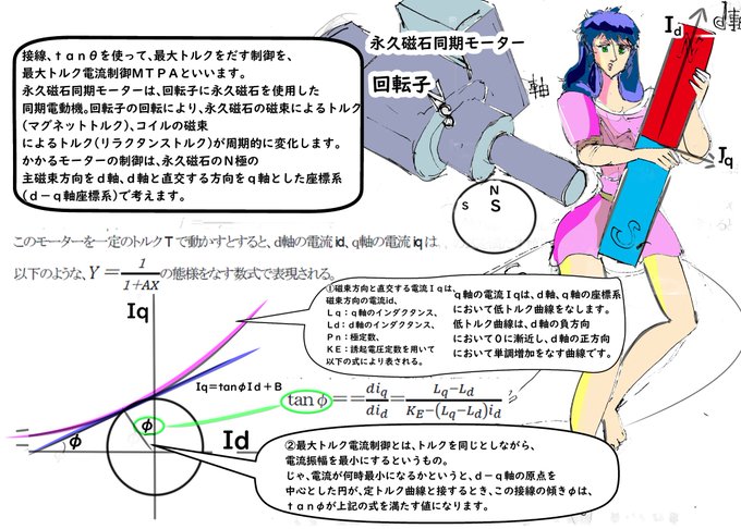 #フォロー返します #相互フォロー #ArtistOnTwitter #ART_RT #回転子 #みんなで楽しむTwitter展覧会 #永久磁石同期モーター #最大トルク電流制御 #MTPA 「接線とか、tanθとか勉強してなんの意味があんだ」とか思っているそこのあなた。永久磁石同期モーターの制御で思いっきり使います。