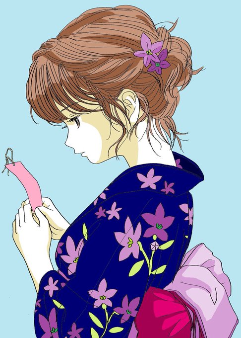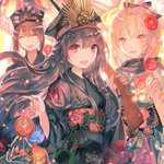 【甘味処 日和屋の看板娘たち】 🐱小鈴(左上) 🌸桜子(左下) 🍀緑子(右下) 額装ver.も載せてみました✨ #獣耳カフェの甘い誘惑 #コピック (今日11/15は #着物の日 だそうですね!✨色違いのお揃い着物もぜひご覧下さい💕)