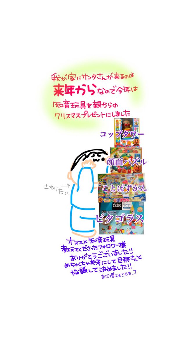 今日の晩御飯は ケンタッキーとケーキと 白菜と豚肉のミルフィーユと ふろふき大根ですってよ(ヒソヒソ) #育児漫画 #1歳 #クリスマス #プレゼント #知育玩具 #アンパンマン率高め #男の子ママ #すくパラトリプル総選挙