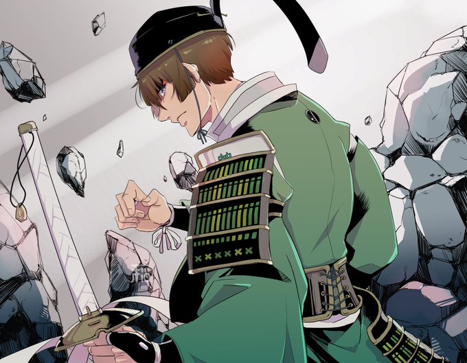 #石切丸極実装記念日 #石切丸極実装3周年 #2月26日は極石切丸実装3周年 おめでとう石切丸さん!!今月は石切丸さんのお祝いがいっぱいで嬉しいよ!!!!この前の重美の奴とおんなじ構図だよ アッ肩の防具描き忘れたwwwwもうレイヤー合体させた後だしこれで上げちゃう