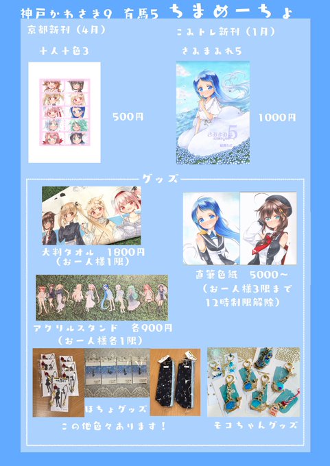 5/15神戸かわさきの話をします。 新刊は『ウォースパイト・イン・ジャパン!春』。冬編に引き続き小話満載52P!! 通販開始!!→ melonbooks.co.jp/circle/index.p… 当日は金剛改二丙のらぐさんと共に【須磨17,18】でお待ちしております。 ではでは、皆さんにお会いできるのを楽しみにしています!! #神戸かわさき9