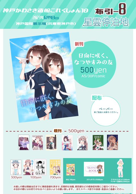 #神戸かわさき10 おしながきできた! 有馬13【centimeters】 新刊はセット頒布優先、アクスタ無くなり次第単品頒布になります。4月に出したFASHIPは5冊くらい、去年の神戸の本は残り3冊しか手持ちがないので欲しい人は早めに来てください✌ 天候的に色々不安要素が多いですがなんとかなりますように🙏 twitter.com/bbmm145/status…