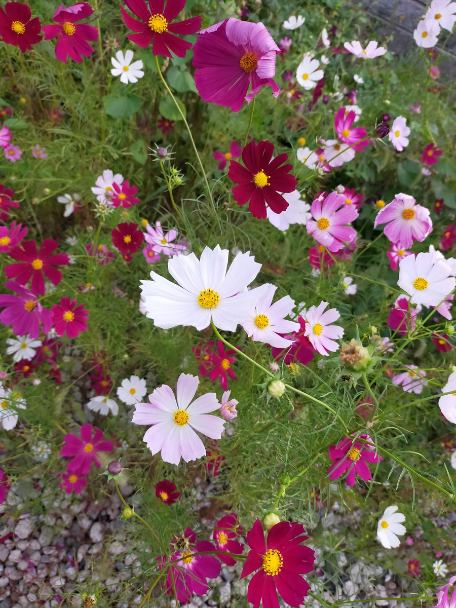 朝さんぽ。一面に広がるコスモス畑を見に行きました。😊 季節が過ぎるのは思うより速いものですね。みなさんもお気をつけて。 🤔すぐ終わるぞ!! #漫画が読めるハッシュタグ #あんたいま夢をみとるな #秋桜